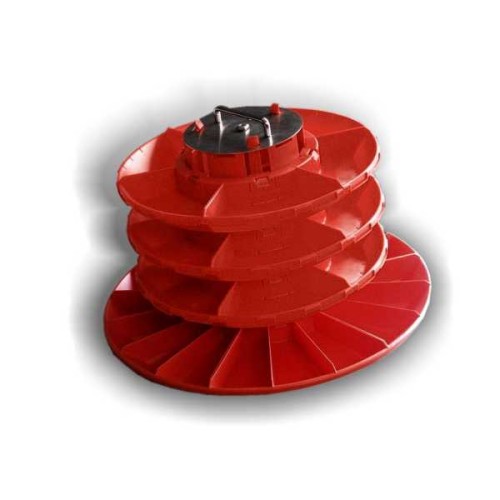 Базовая система для хранения электронных компонентов состоит из четырех лотков ⌀ 600 мм, на устойчивом металлическом основании, позволяющем наклонять конструкцию до 200. Может поставляться как в антистатическом (ESD) исполнении черного цвета (диссипативный материал с удельным поверхностным сопротивлением 106 Ω - 109 Ω), так и в обычном, не антистатическом исполнении (оранжевого цвета).